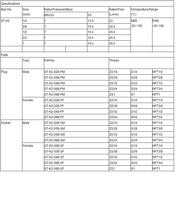 GT-K2 Japanese Type Hydraulic Quick Coupling